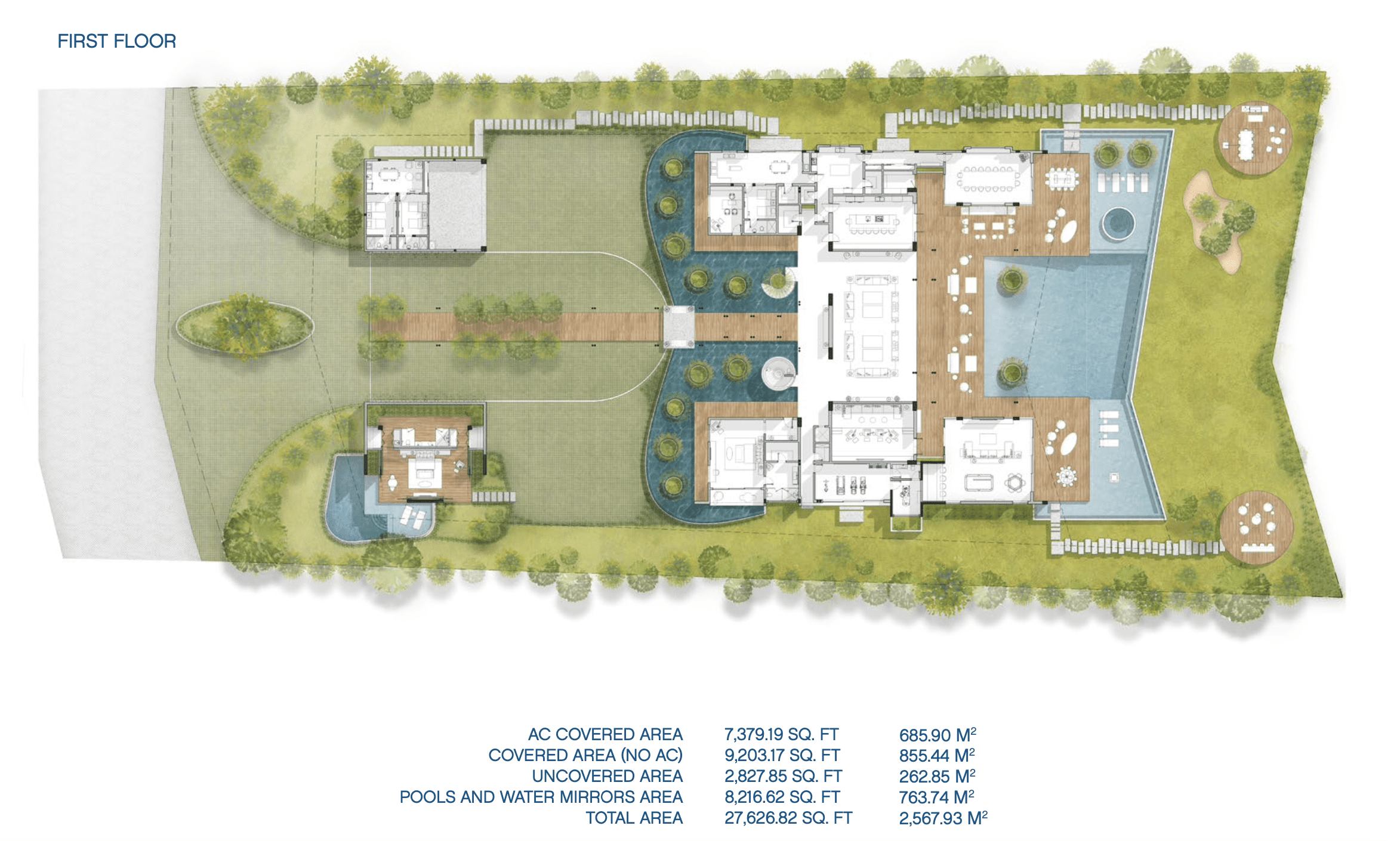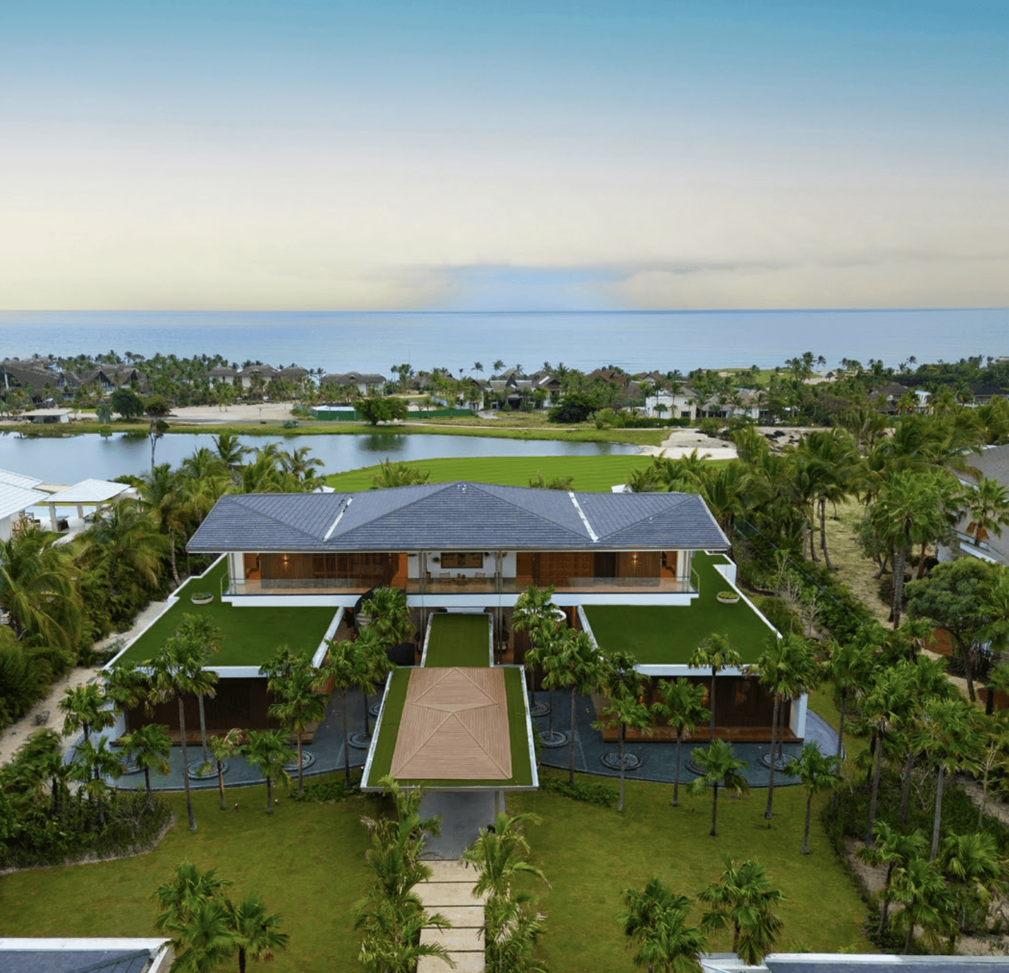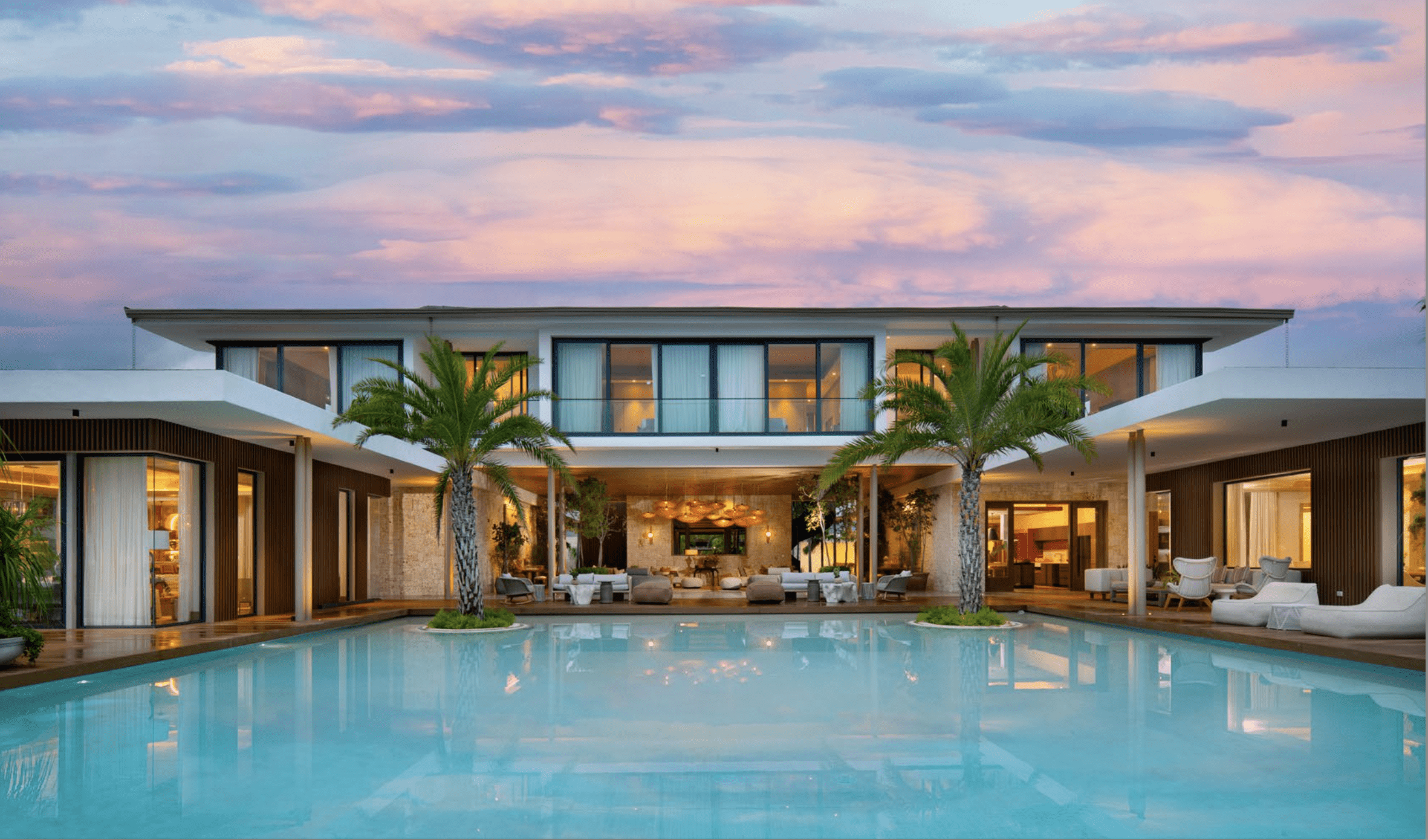 With cinema rooms, a games area, a swimming pool, a guest house and 6 spacious bedrooms, this villa is designed to offer an incomparable living experience. All spaces were conceived under the concept of a house floating in the sea, where the water and the pool surrounding the house become protagonists of the architecture and the user experience, offering a relaxed and tropical atmosphere.